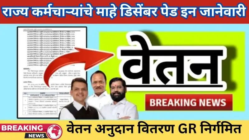Good News: राज्य कर्मचाऱ्यांचे माहे डिसेंबर पेड इन जानेवारी वेतन करीता अनुदान वितरण GR निर्गमित