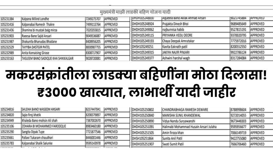 मकरसंक्रांतीला लाडक्या बहिणींना मोठा दिलासा! ₹३००० खात्यात, येणार लाभार्थी यादीत नाव पहा